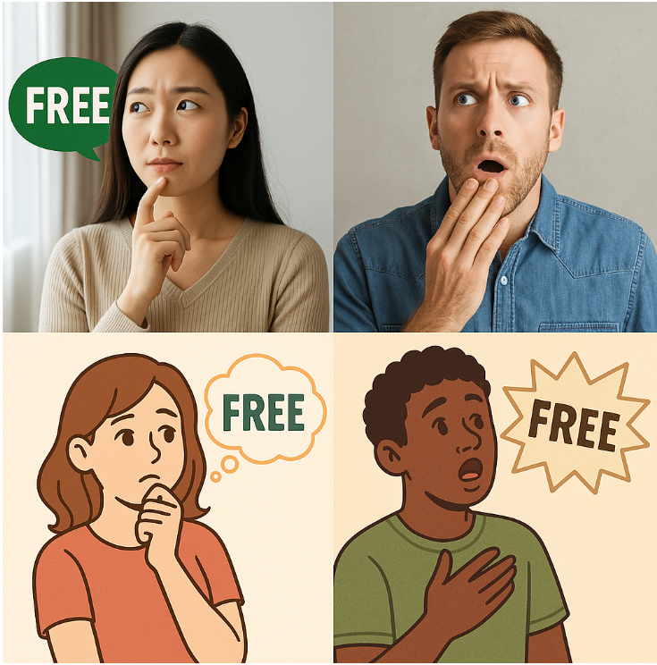 ์ด ์ง๋ฌธ๋ค์ ํตํด, ‘๋ฌด๋ฃ’๋ผ๋ ๋ง์ ๋ฌด์กฐ๊ฑด ํ๋ค๋ฆฌ์ง ์๋๋ก ๋ด ๊ธฐ์ค์ ๋ง๋ค์ด๋ณด์ธ์.